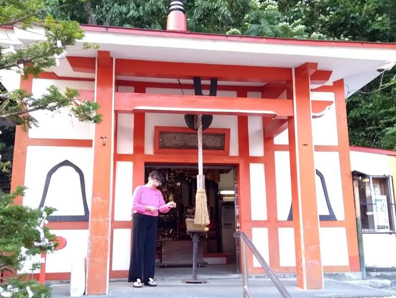 geeft ons dan wat vrije tijd om te shoppen of te wandelen. Ik loop direct naar een winkel die zij aanduidde als een Second Hand Shop. Ik had nl. gehoord dat je daar soms tweedehands kimono's kunt vinden. Dat is inderdaad het geval en ze kosten heel weinig! Het zijn wel geen hele dure zijden exemplaren, maar mooi genoeg om er een kamerjas van te maken. Er is ook een herenmodel bij en ik koop er 4 voor zo'n €45! Zeer vergenoegd bezoeken wij een kleine Shinto schrijn aan het eind van de straat. Voor Y100 kun je een toekomstvoorspelling uit een automaat trekken. Dit zit in een plastic ei. Ik vraag Nori-san of zij er iets van kan vertalen. Je hebt vier soorten voorspellingen had Stefanie verteld: Ongeluk, een beetje ongeluk, een beetje geluk of veel geluk. De mijne is een beetje geluk. Zakelijk ziet het er goed uit, ik moet alleen harder