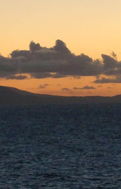Ik word om 7 uur wakker, heb uitstekend geslapen! Niet wakker geweest. De boot is aan het manoeuvreren, wij zijn keurig op tijd want de ETA is pas 8 uur! Het is licht bewolkt maar helderder dan gisteren. AP heeft ook goed geslapen. Wij kunnen eindelijk appjes ontvangen: met Dad gaat het goed en met Puck ook, die moest naar de dierenarts voor een bloedtest.