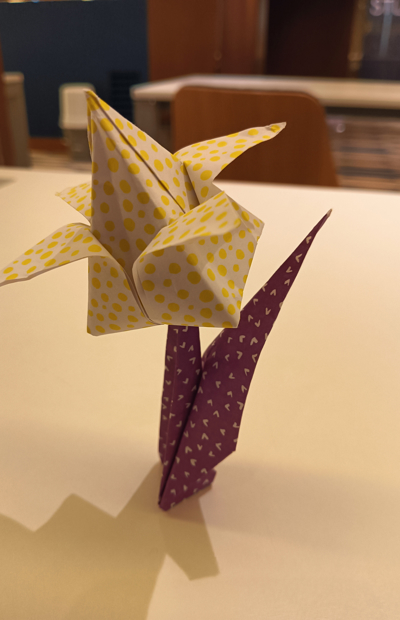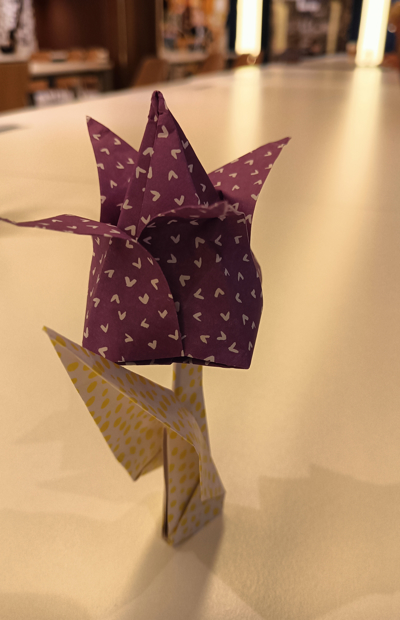First up was an origami tulip. The room was full. And there are a lot of people who don’t listen to and follow instructions. We were quite good at origami and if it becomes an Olympic Games event we’ll be in there.