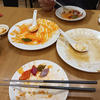 Day 2 in Dubai we took the metro, tram and Monorail down to The Palm. Pretty phenomenal what they have built out of the sea. Lots of tower blocks & gated community houses some of which are beachside with lots of shark nets. Walked through Atlantis Resort which was full of tourists. Wanting to avoid the previous night’s experience, we stopped of at the Mall of Emirates for dinner. We chose an Asian restaurant which turned out to be Michelin starred and was excellent. It occurred to us after we had hoovered the meal we should have taken a photo. We took a photo of the empty plates instead!