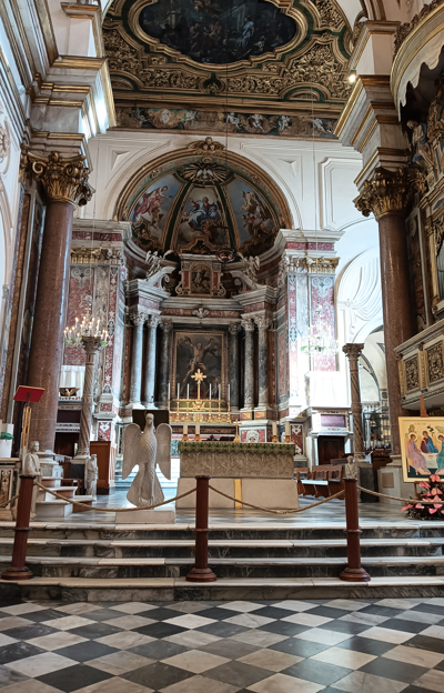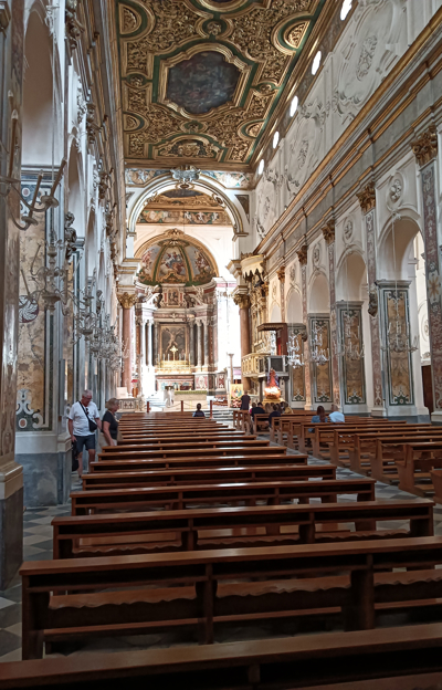 We visited the church first, the crypt was quite stunning with gold, glitzy frescoes. We then wandered the streets full on shops, tried the lemoncello chocolates (mmmmm) and bought another leather handbag. No - i don't have a problem!! Everything is discounted due to end of season. We only had a couple of hours here as departure was 4.30pm. The bronzed adonis was still there when we got back.