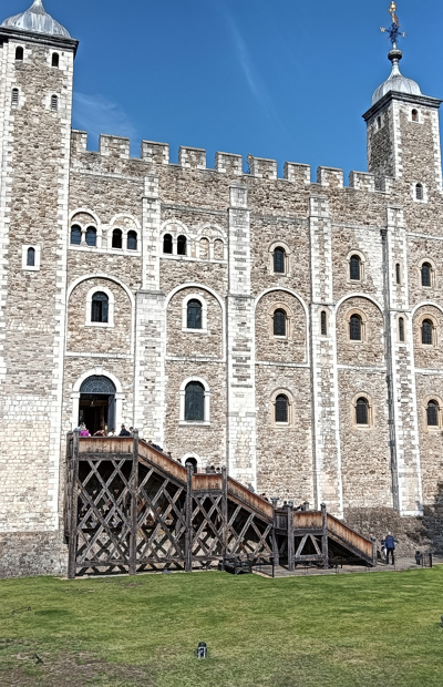 Outside St Pauls we ate our homemade lunches, much more efficient than trying to find GF food, and carried on to the Tower of London. A substantial and dominant footprint alongside the Thames River it was very busy in the warm, early afternoon. We paid extra for the very ordinary audioguide but it did mean we didn’t get caught up in the huge free guided tours moving around the site. The crown jewels were impressive, especially the massive gold baptismal fonts. Large grassed areas with big courtyards make this a pleasant place but would have been grim place for prisoners brought through the river gates and up into the towers. The unfortunate Anne Boleyn was beheaded at the Tower and buried in the chapel here which is a rather nice building.