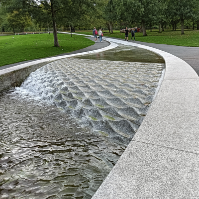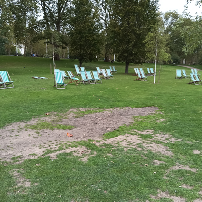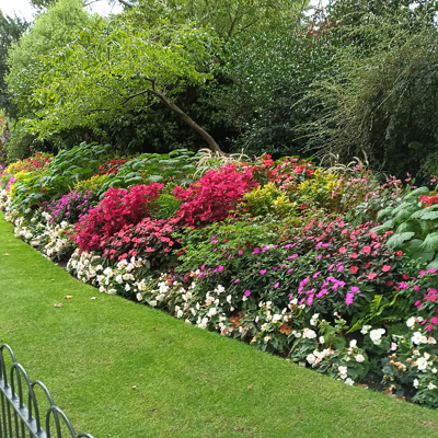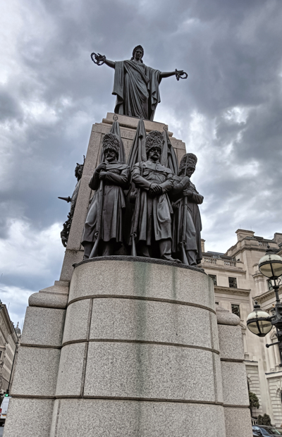 Then we strolled through St James Park with its lovely English gardens. We came across empty deck chairs – the charges explained why they were empty. Continued on to Buckingham Palace which was tourist central and up Constitution Hill to Wellington Arch. Then over to Hyde Park for an ice cream. We asked for the advertised single cone with flake for £4.75 each. They had run out of flakes so we suggested it should be cheaper. Suddenly the English wasn’t so good. The girl the suggested the chocolate topping which would be another 50p and she was quite bewildered when we laughed. We got the extra chocolate sauce for no extra cost as a matter of principle.