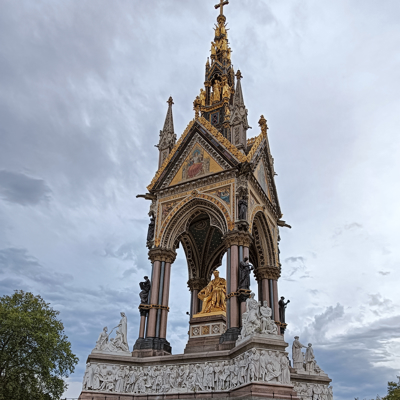 Following around the Serpentine we came across the Princess Diana Memorial – a bit underwhelming. And then the Prince Albert memorial – which is massively overwhelming opposite the impressive Royal Albert Hall.