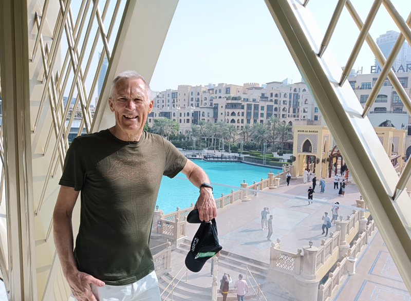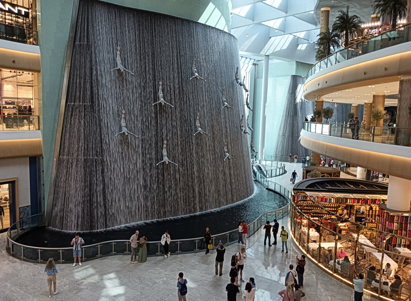 Had a cuppa to sort him out and then took the train down to Dubai Mall. The station is quite a walk from the Mall – we recorded over 1100 steps coming back but extensive use of travelators, and of course everything is airconditioned. The first shop we saw was a bookshop. It is the biggest book shop we have ever seen and we spent over an hour there. For those who know us well, will know we have difficulty walking past a bookshop and even more difficulty walking out without a purchase. Alas, I have succumbed and purchased yet another Malcolm Gladwell book.