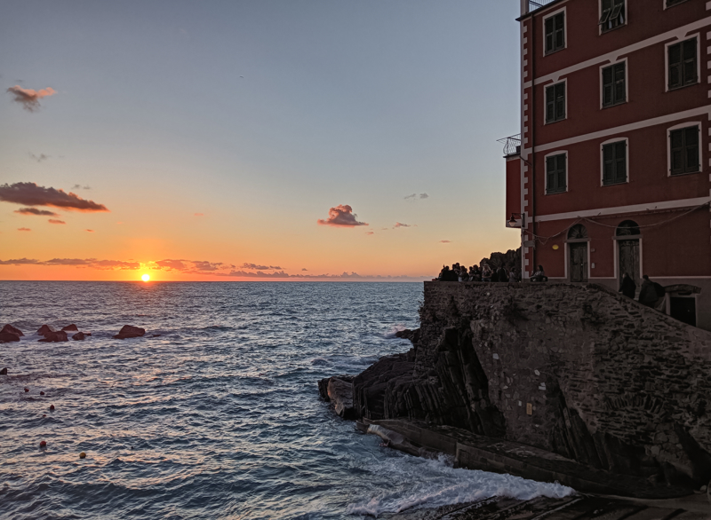 The last town was Riomaggiore and I think everybody visiting the area had converged on the harbour for the sunset which was spectacular. This area would be so lovely on a warm, summer night when all the day trippers have left. Unfortunately the last train departs at 11.30pm, so would need to stay up quite late.