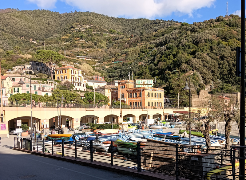 Twenty minutes down the road at Pisa an Italian naval officer got on and sat next to us. He was returning home to La Spezia from duty in Buenos Ares. His English was a bit better than my Italian and we managed a conversation between us. I got a free one hour Italian lesson! I can read enough to get by and order chicken rather than fish. I can recognise spoken Italian vs German vs French but they speak too fast to listen into their conversations. He told us where to go, to miss out Corniglia if we needed to drop one and as we were passing through the Massa region explained this was where most of Italy’s marble comes from. You can see the big quarries from the train.