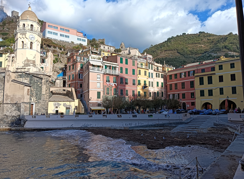 We had just over an hour in Veranazza which has to be my favourite. The medieval church has origins in the 13th century and was quite different from other churches we have seen. Lots of restaurants at the harbour but it was a bit early for a wine.
